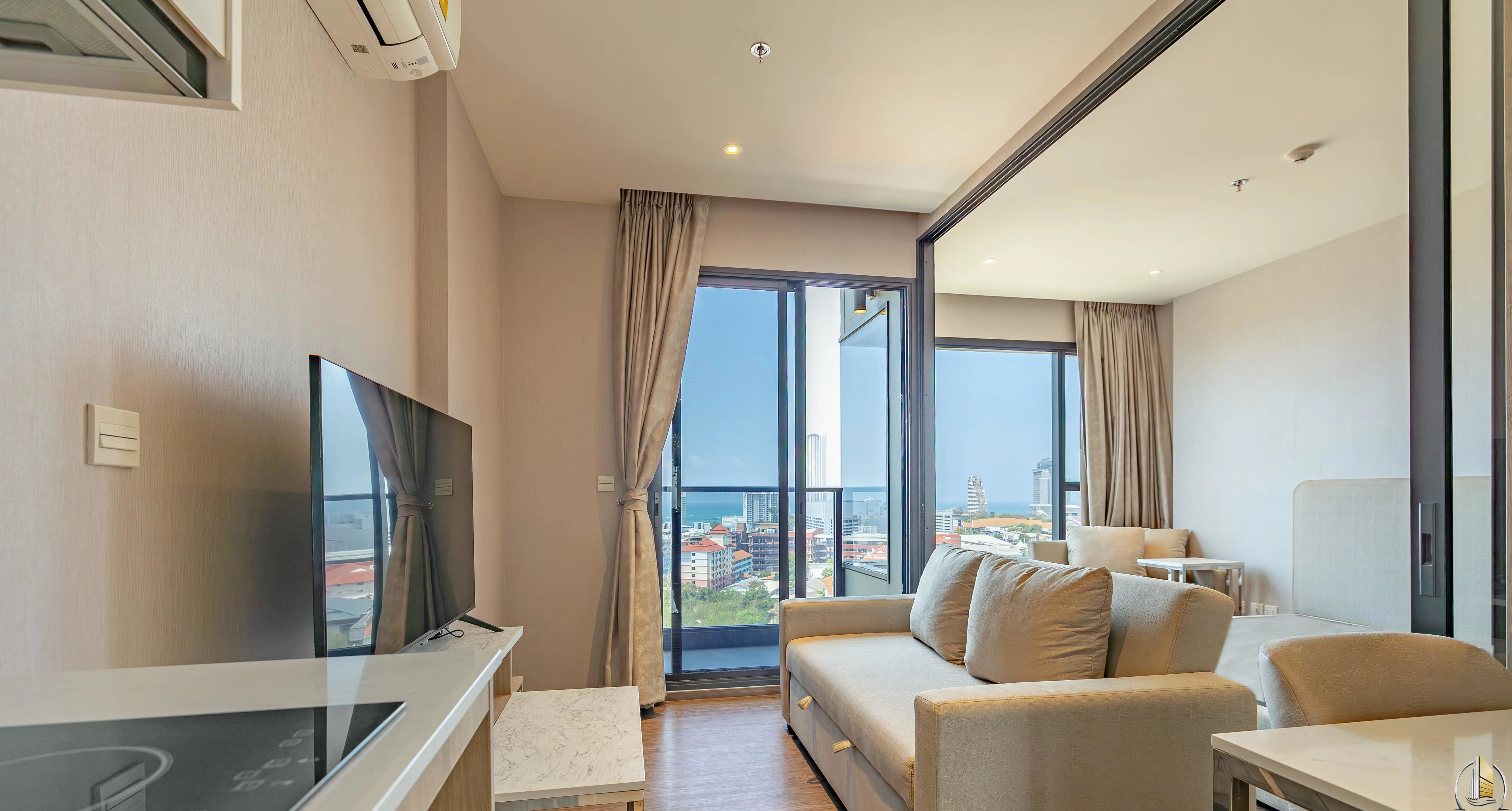 สำหรับเช่าคอนโดหรูรูปแบบ 1 ห้องนอน 1 ห้องน้ำ อยู่บนชั้น 12 สามารถมองเห็นวิวทะเล ภายในห้องตกแต่งสวยหรูสไตล์โมเดิร์นทันสมัย ขายพร้อมเฟอร์นิเจอร์และเครื่องใช้ไฟฟ้าครบครัน พร้อมเข้าอยู่แล้ววันนี้